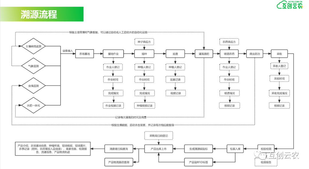 “民以食為天,食以安為先”,農產品可視化種植管理系統(tǒng)溯源解決方案即采用先進的農業(yè)物聯(lián)網技術,結合現代信息化手段,對農產品的產地環(huán)境、農業(yè)投入品、農事生產過程、質量檢測、加工儲運等質量安全關鍵環(huán)節(jié)進行數字化管理,為農產品建立“身份證”制度,實現農產品的全程可追溯。同時,通過一物一碼技術,幫助農業(yè)生產和流通企業(yè)實現產品防偽鑒真,并精準獲取客戶分布數據,助力農產品營銷。